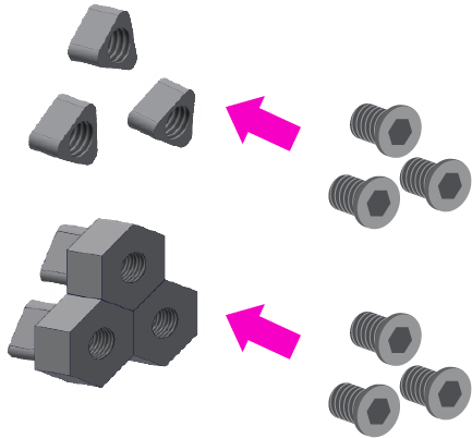 - ①「本体」に「専用アタッチメント」を取り付けてネジ止めする